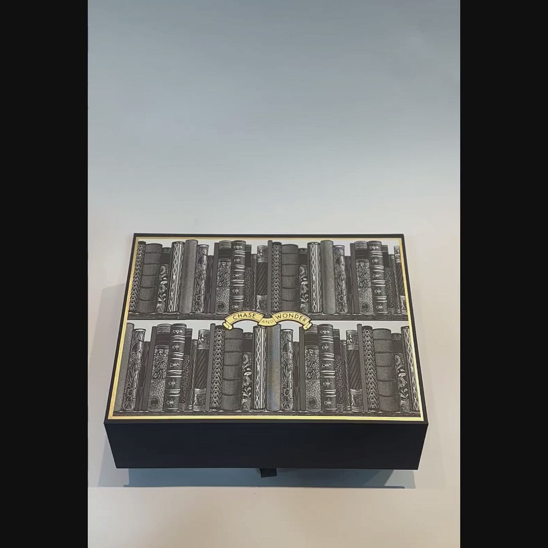 Presented in a gold-foiled box adorned with books, it’s the ultimate gift for those who cherish sophistication and stories.