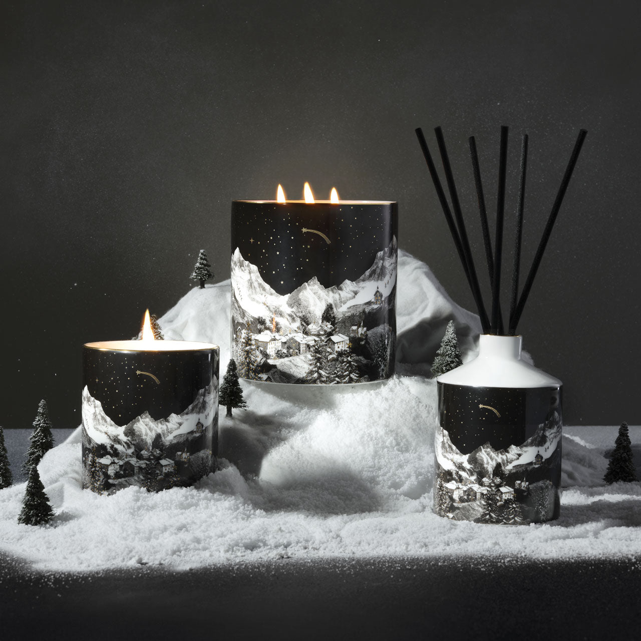 Featuring The Alpine Lodge fragrance—a blend of fir, pine needles, lavender, cinnamon, clove, and moss—it captures the warmth of a crackling fire after a day on the slopes.